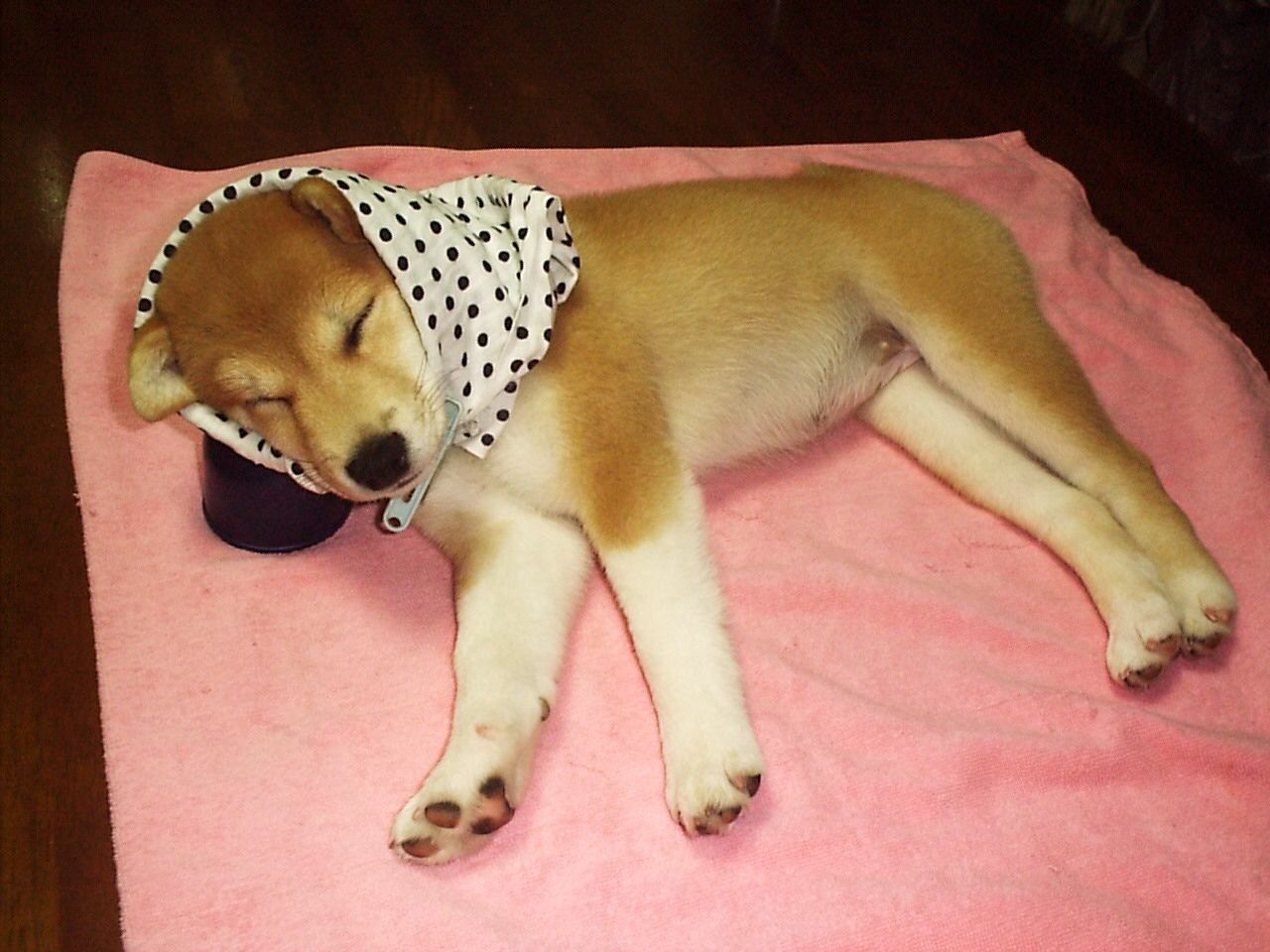 2002年生まれ 生後1ヶ月 遊び疲れてお座りしたまま寝てる