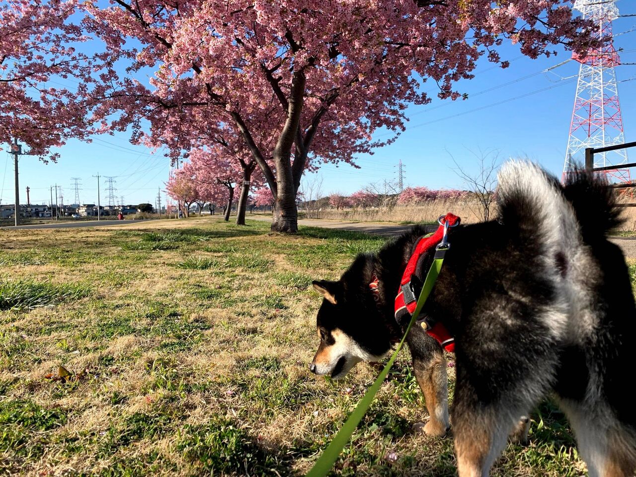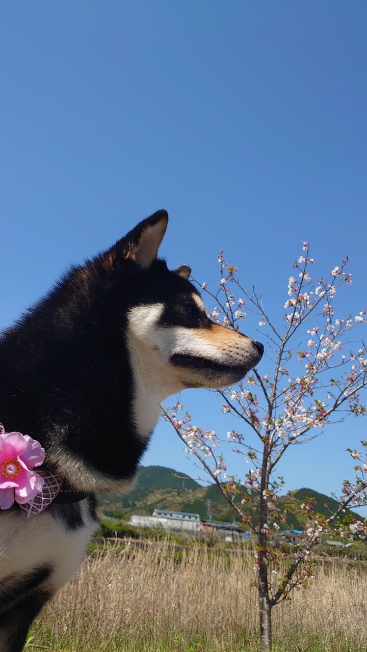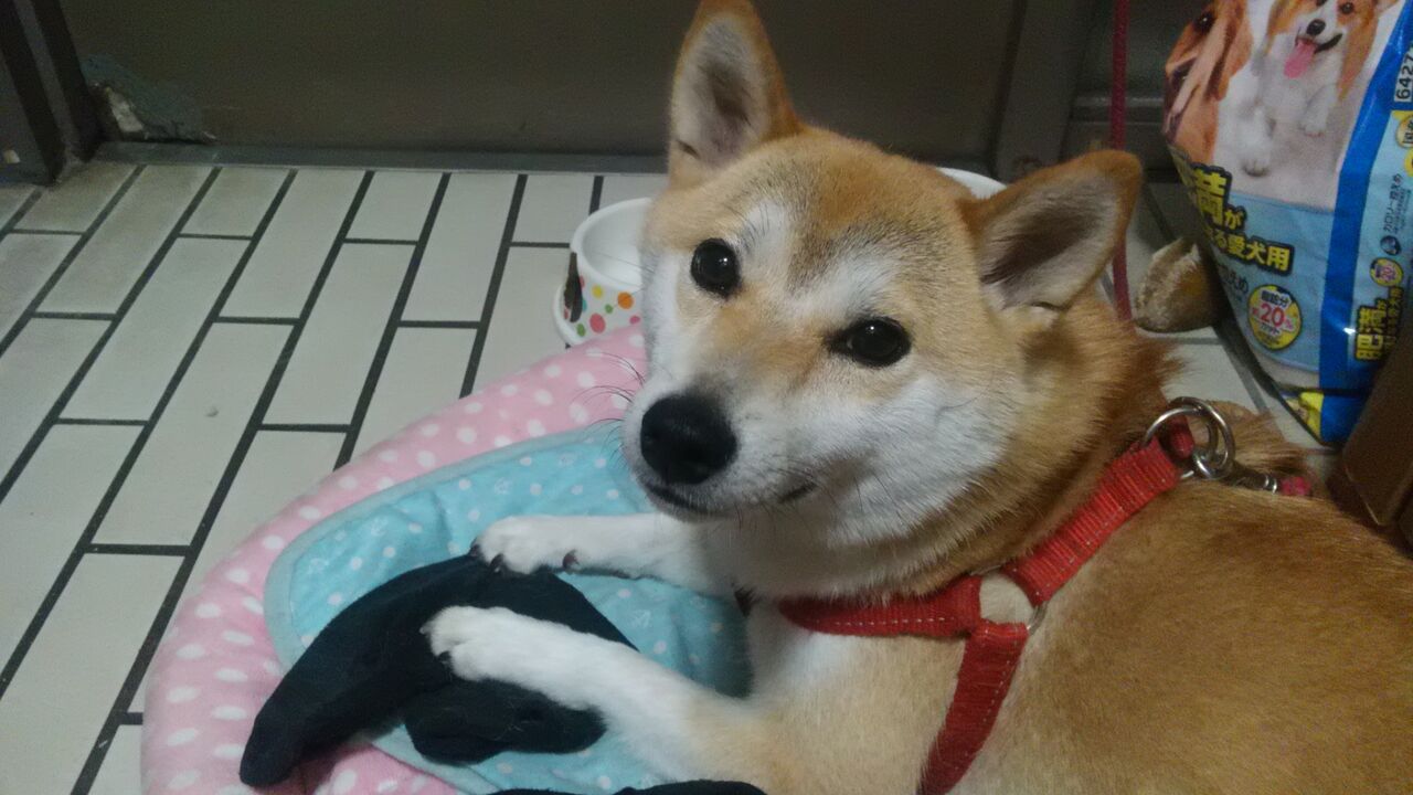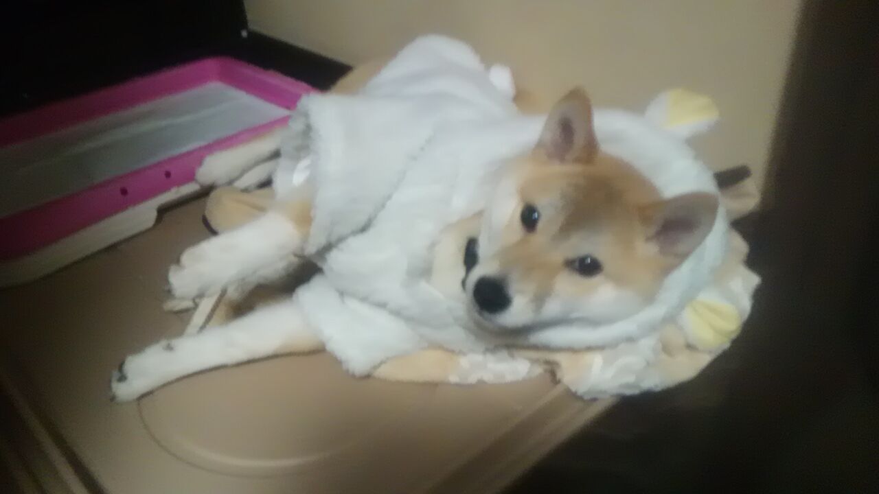 うちの柴子は花柄のバンダナ付けられてた