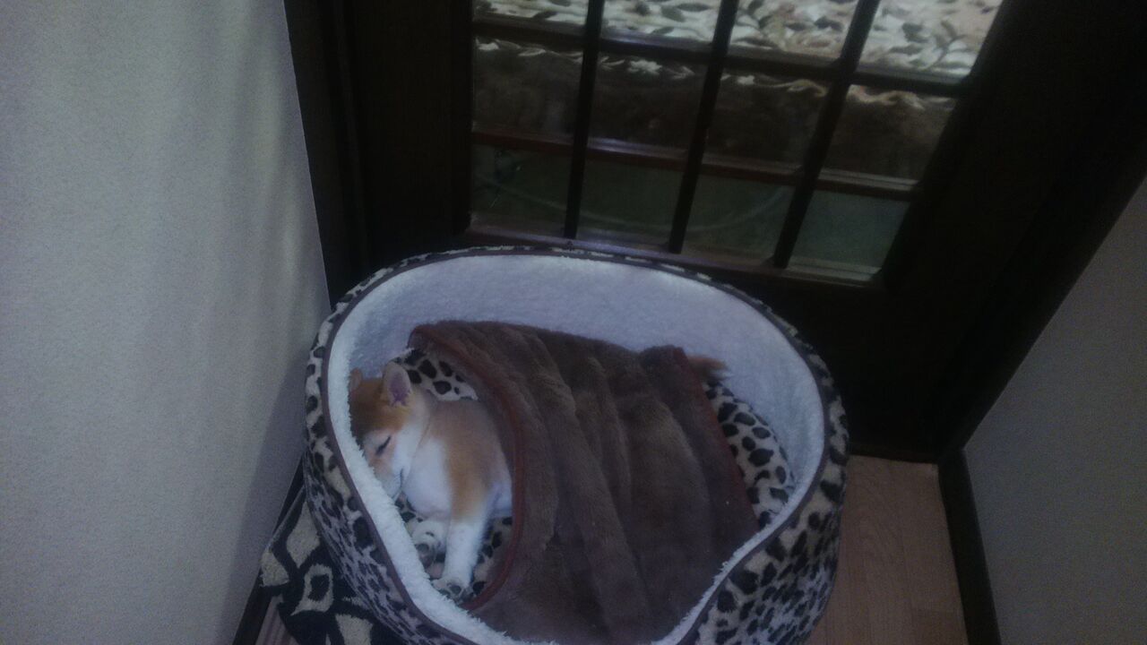 何かにくっついて寝ているよね