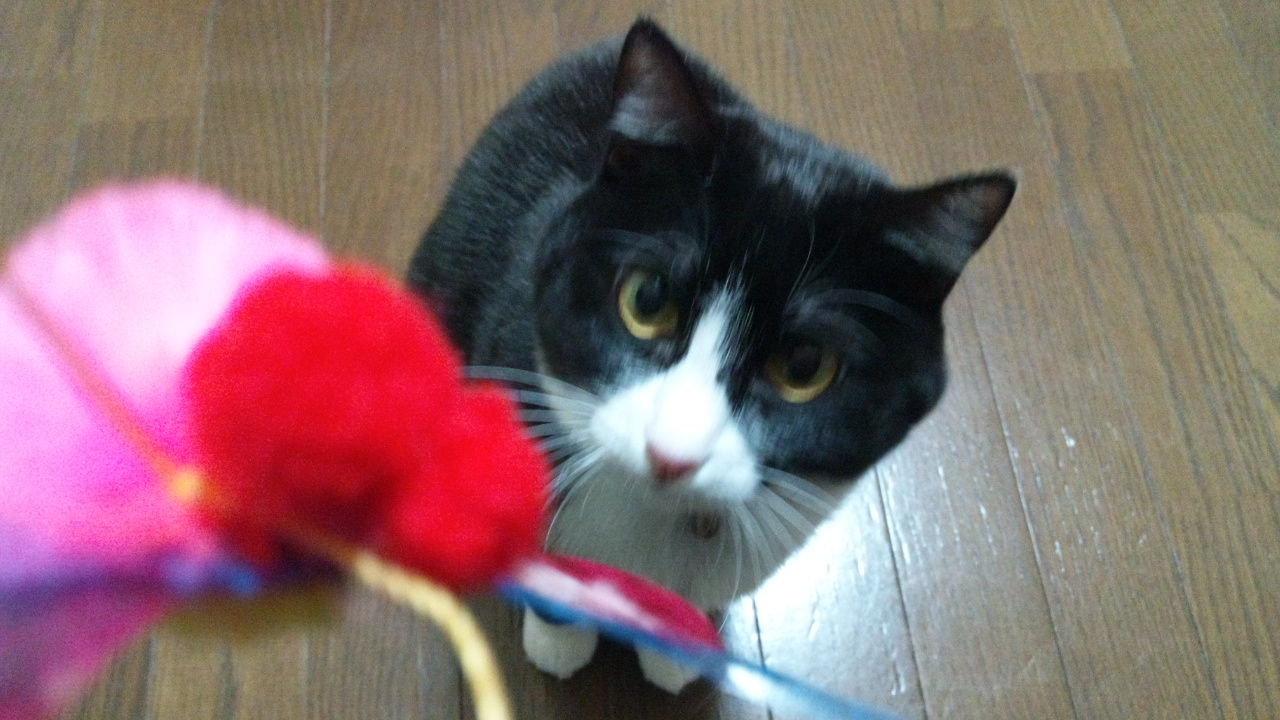 うちの次女はじゃらし遊び中は黒目が大きくなってかわいい顔になるよ