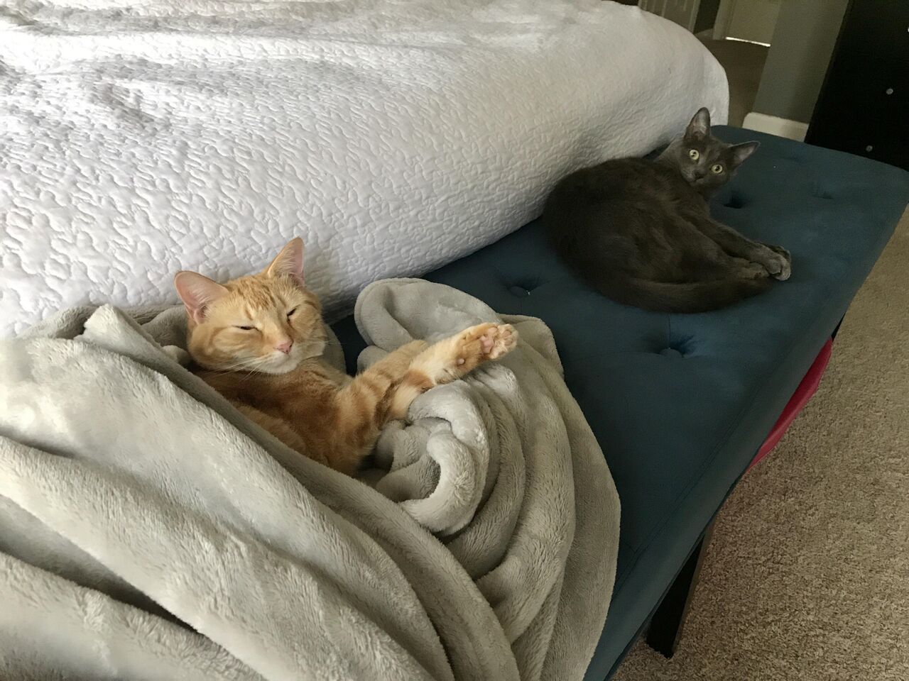 【どうぶつ画像】ベッドの上のシロにゃん、尻に敷かれるねこ、箱いっぱいのねこ ほか【再】
